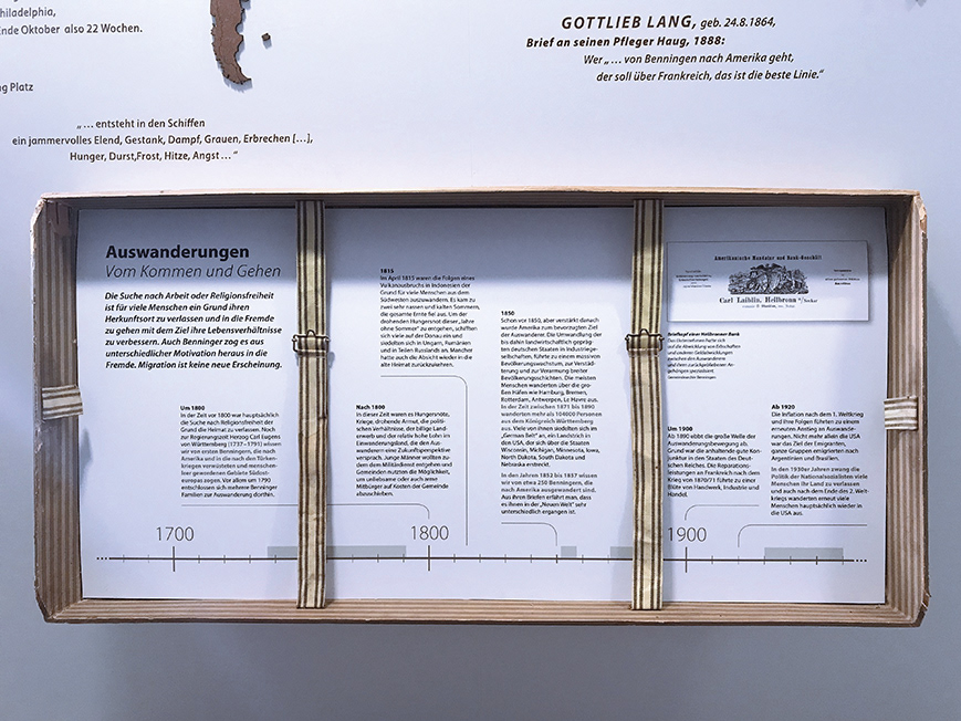 REDESIGN of the 2 floor main exhibition of the town museum in Benningen am Neckar Exhibition Curator: Judith Szulczynski-Bajorat Technical Implementation: Markus Werkmann