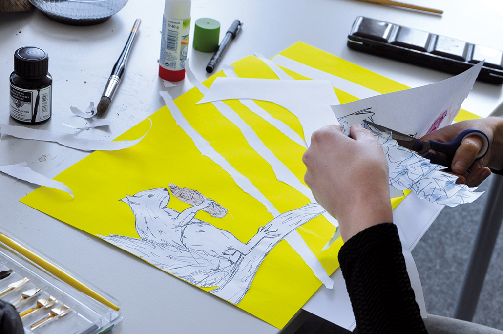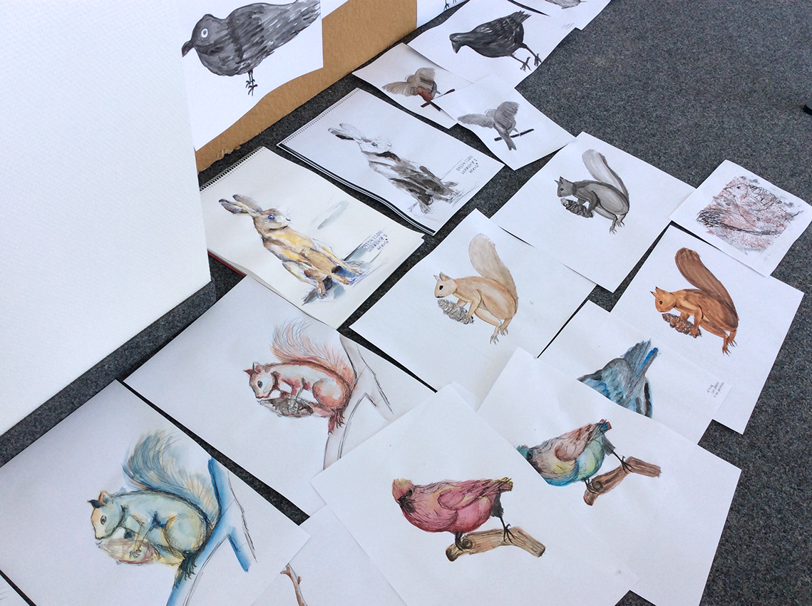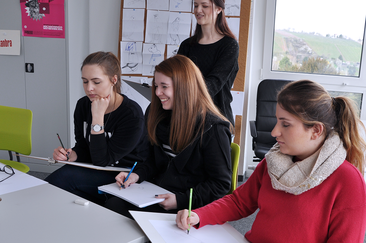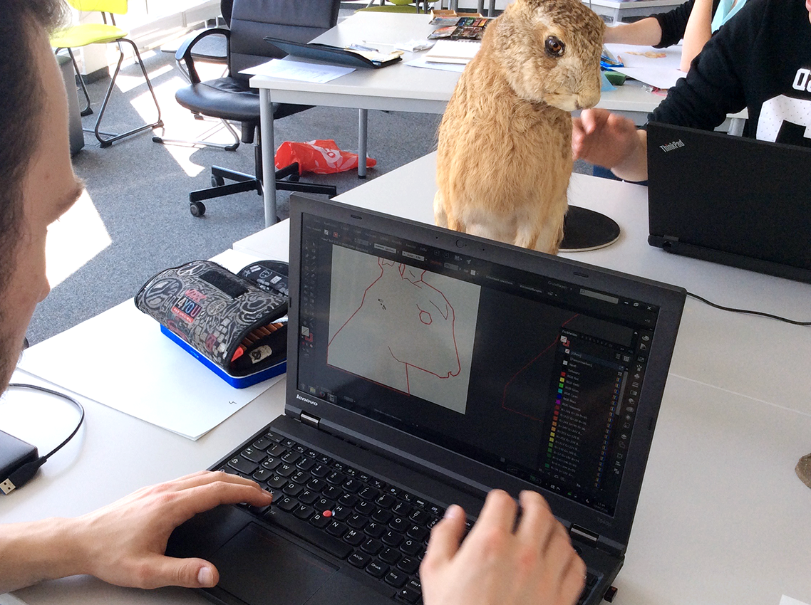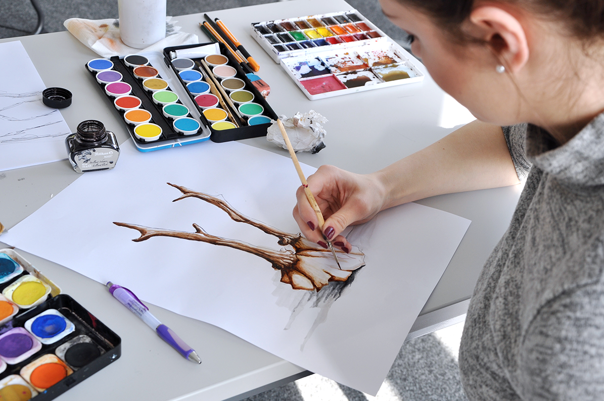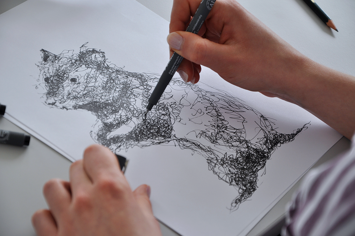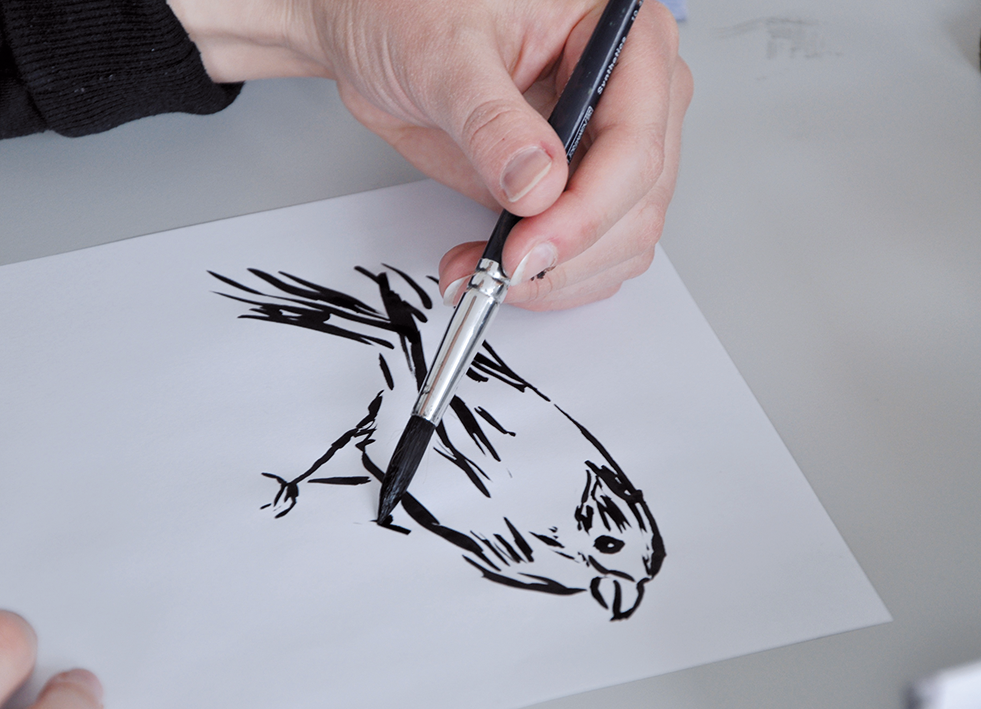 Im Illustrationsworkshop der Zweitsemester im Studiengang Kommunikationsdesign geht es um bildnerische Wahrnehmung und Darstellung von Tierpräparaten. Mit verschiedenen Übungen wird das Sehen und Begreifen des Objektes und umliegenden Raums trainiert. Darstellungsübungen wie z.B. schnelles Skizzieren, Blindzeichnen und Zeichnen mit der nicht-dominanten Hand trainieren spielerisch die bildnerische Darstellung des Objektes. Es werden verschiedenen Techniken und Materialien ausprobiert und damit experimentiert – von der konkreten Zeichnung bis hin zur freien Illustration. The illustration workshop for the 2nd semester of the communication design program focuses on the visual perception and representation of animal specimens. Various exercises are used to train seeing and conceiving the object and the surrounding space. Representation exercises such as quick sketching, blind drawing and drawing with the non-dominant hand playfully train the pictorial representation of the object. Different techniques and materials are tried out and experimented with - from concrete drawing to free illustration.